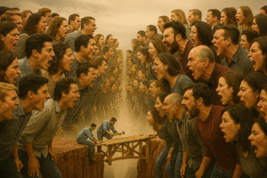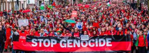 Afgelopen zondag liep ik tussen 250.000 rode-lijn-demonstranten in Amsterdam en dan is zo’n groep gelijkgezinden niet al te lastig in een paar categorieën op te delen, zoals daar zijn de Palestijnen, de slachtoffers van de genocide, waarvan helaas een paar vertegenwoordigers op het podium wat te lang en te hard stonden te krijsen, maar desondanks terecht wezen op de wandaden van crimineel ‘Neetanyahu’. Er liepen – groep 2 – veel ouderen, die na 2 uur stilstaan weer afhaakten, maar toch diep meeleven betuigden met het lot van de Gazanen. Er was ook een vrij zichtbare tussengroep, pakweg een derde, die zich enerzijds kapot ergert aan hetgeen zich daarginds voltrekt, die wil dat het stopt en die wil overgaan tot het boycotten van alles wat Israëlische trekjes heeft. De grote overeenkomst bij ons allen zat uiteraard in een walgelijke afkeer van het clubje dat nu nog even in Den Haag de lakens uitdeelt en zich geen zak aantrekt van hetgeen ons overkomt. Je ziet en bespeurt kortom, de verschillen, de kloofjes in de beleving, in de ergernissen en juist die kloofjes zijn de laatste tijd landelijk en mondiaal verworden tot kloven, tot verschillen in beleving van wat we ooit als een gemeenschappelijke samenleving beschouwden.